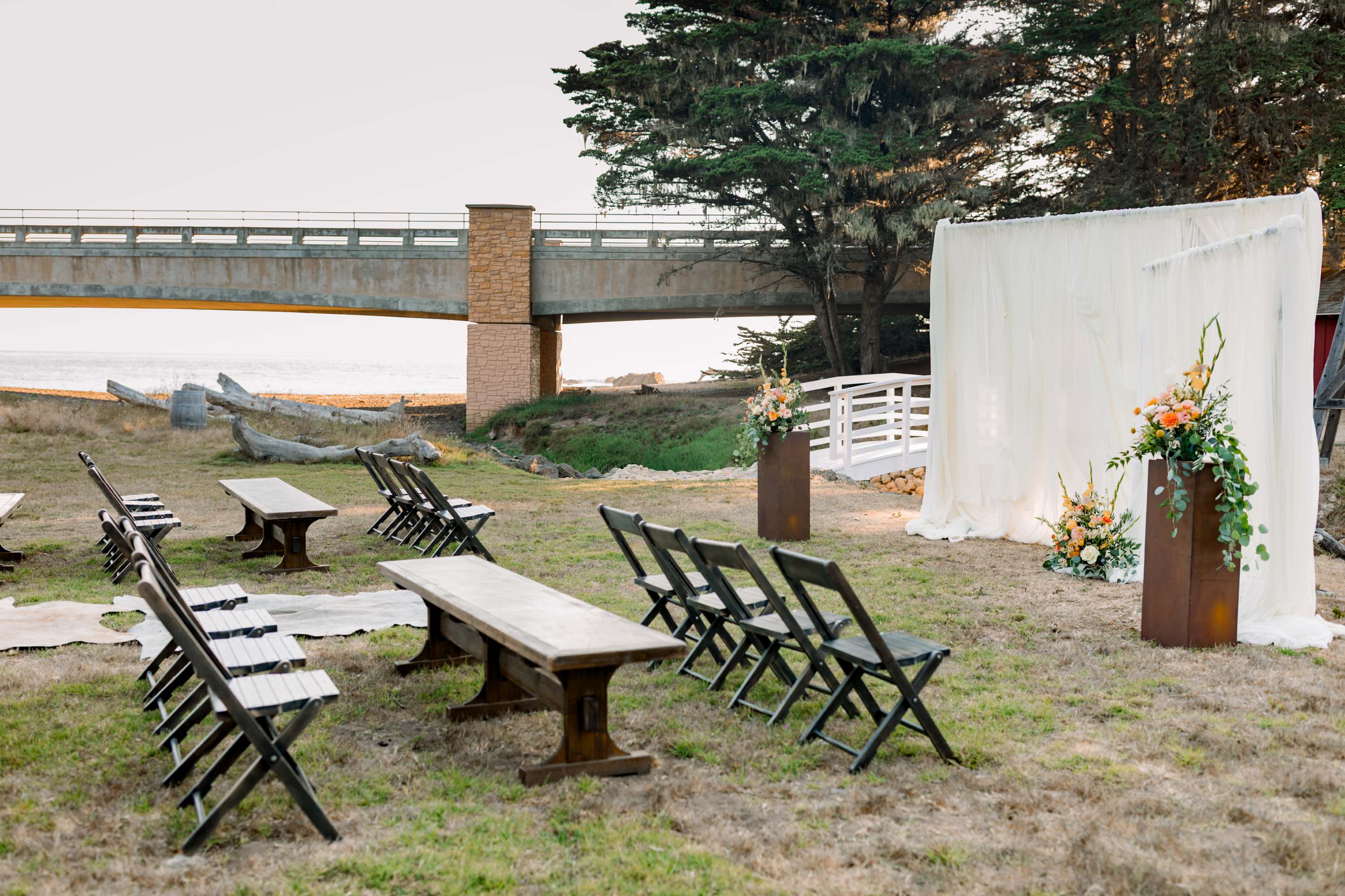 Nestled along the stunning coastline of Cambria, Oceanpoint Ranch offers the perfect blend of natural beauty and versatile spaces to make your wedding day truly unforgettable. From a romantic beachfront ceremony to a grand woodland reception, we invite you to celebrate your love in a setting that reflects your unique style. Whether you're dreaming of a coastal cowboy wedding with lawn games, ocean views, and s'mores, or a serene, twinkle-lit atmosphere with sweeping vistas, Oceanpoint Ranch offers a breathtaking backdrop for your special day.
